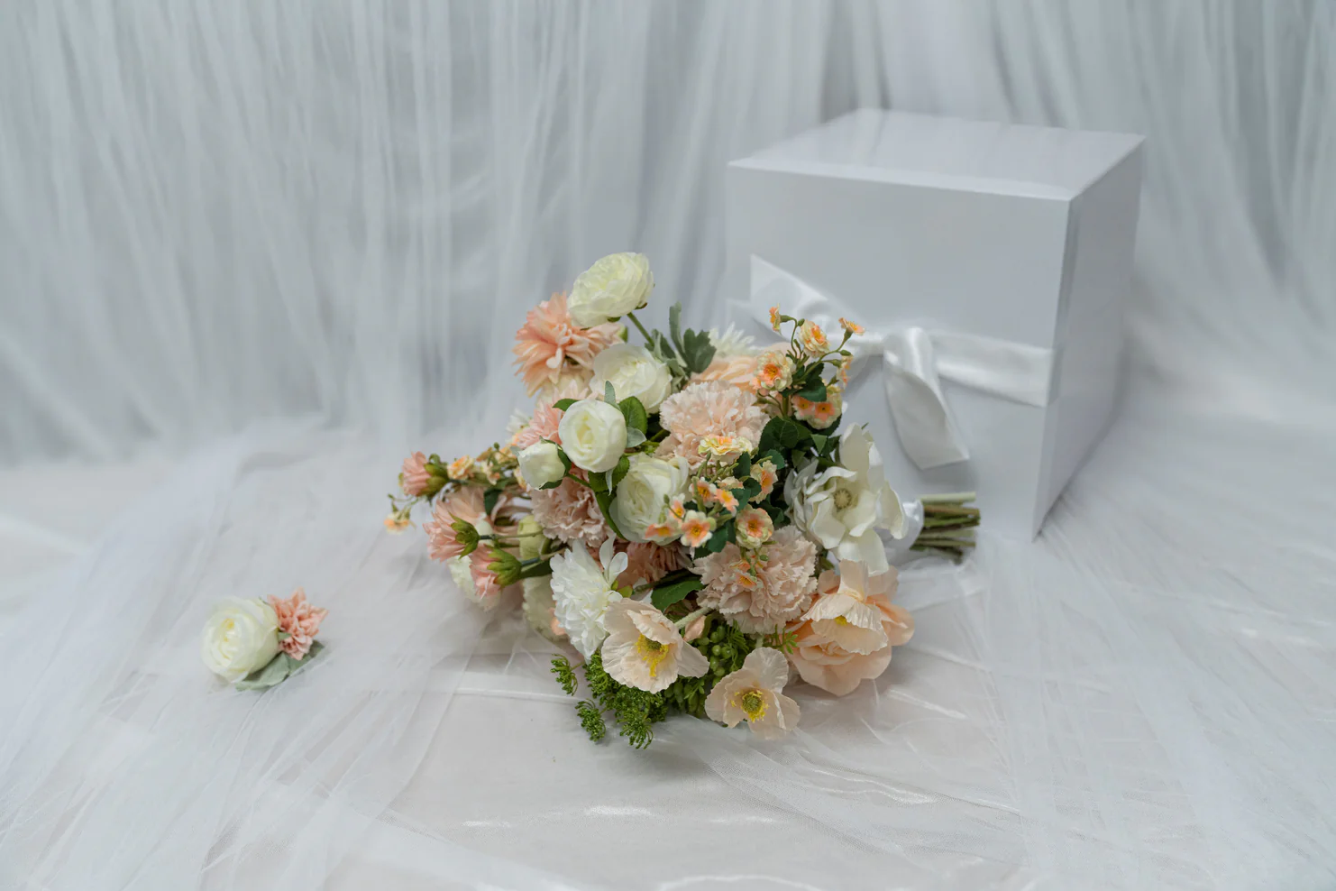 This silk flower bouquet is timeless, travel-friendly, and designed to be treasured long after the big day.