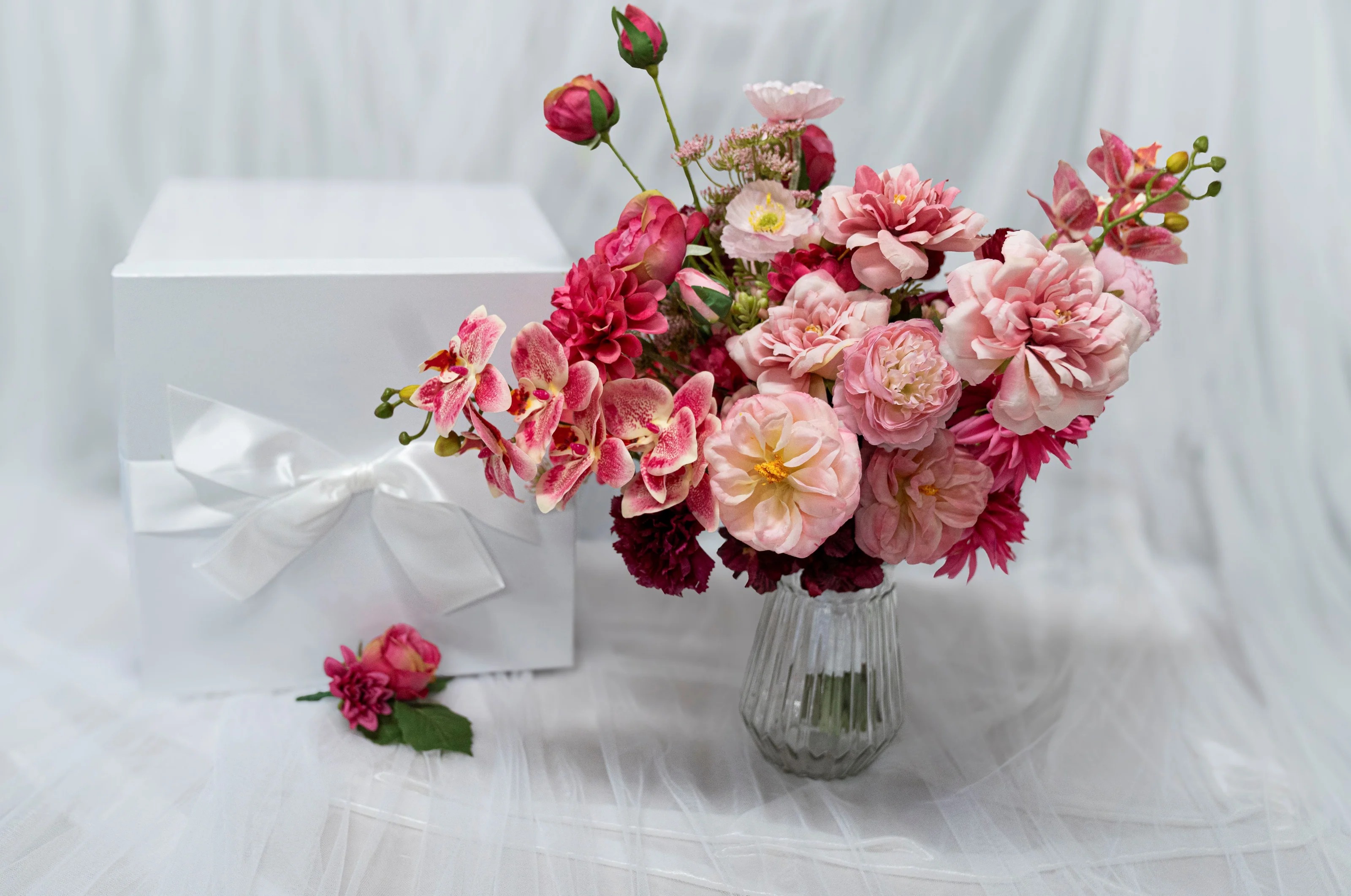 This silk flower bouquet is timeless, travel-friendly, and designed to be treasured long after the big day.
